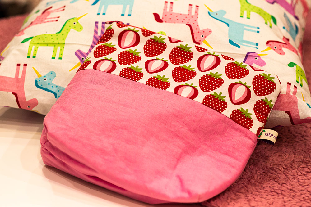 Im Laufe der Zeit nähte Paulina bei verschiedenen Workshops im Giraffenland noch eine Dirndlschürze und einen Zierpolster. Jedesmal durfte sie sich davor mit fachkundiger Beratung einen passenden Stoff im Geschäft aussuchen und wurde bei der Verarbeitung tatkräftig unterstützt. Nicht zuletzt wurde sie zu ihren Näharbeiten einige Male von den tollen Schnittheften und -büchern, die es im Giraffenland zu kaufen gibt, angeregt.