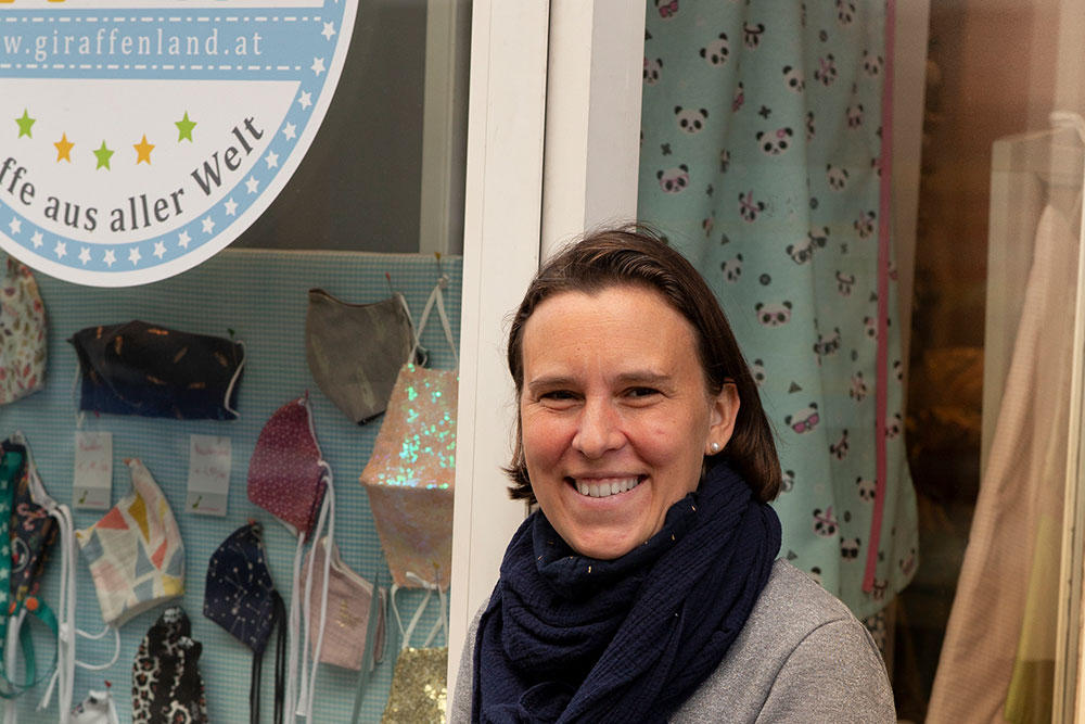 Und wie es der Zufall wollte, lernte ich Tamara Drabek, die Besitzerin vom Stoffgeschäft „Giraffenland“ kennen. Sie erzählte mir, dass sie auf der Suche nach bunt gemusterten, verspielten Stoffen, aus denen sie für ihren damals eineinhalb-jährigen Sohn etwas nähen wollte, in einem amerikanischen Online-Shop fündig wurde. Nach Fertigstellung der selbst geschneiderten Modelle verkaufte sie die übrig gebliebenen Stoffreste auf eBay. Das war dann auch der Beginn ihres Stoffhandels, vorerst online. Bis sie ihr erstes Geschäft in der Währinger Straße fand. Und mittlerweile blüht der Off- und Online Handel.